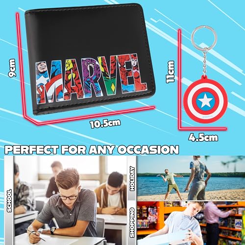 Marvel Card Wallet and Keyring Set for Men Teenagers – Card Slots ID Pocket Groot Mens Wallet – Gifts for Men (Black Captain America)