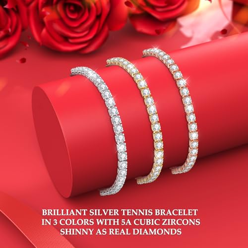 J.Fée Silver Bracelets for Womens 925 Tennis Bracelet,Adjustable Bracelet With 4MM White,Green,Purple,Pink,Opal Crystal Ladies Jewellery Birthday Mothers Gift for Her with Box,Silver,Gold,Roldgold