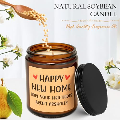 Housewarming Gifts for New House: The hopeful label saying “Happy New Home,Hope Your Neighbors Aren’t Assholes” is a special way to congrats on the big move for the new homeowners! Very Funny New Home Gifts. It’s a truly heartfelt candle gift for friends, bestie, boyfriend, mom, woman, wife, sister, daughter, new neighbors, boss, coworker, hostess, first home buyer, indian, christian, couple family… Home is where one starts from