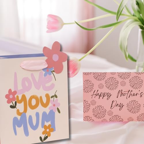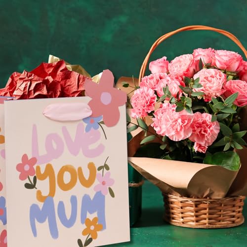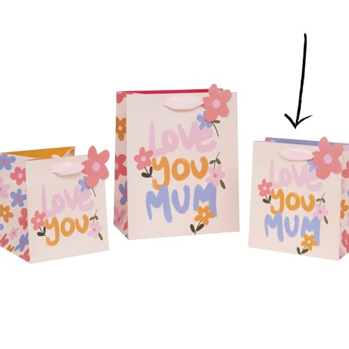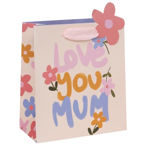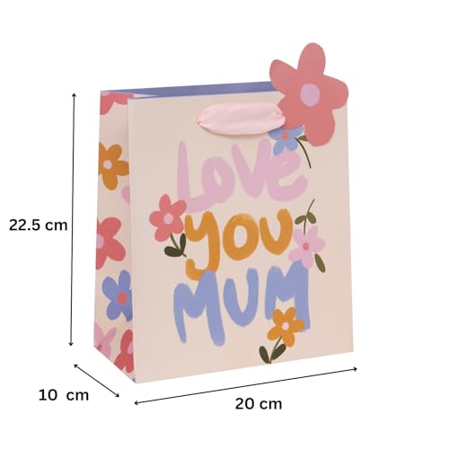 Glick Luxury Gift Bag, Love You Mum Gift Bag, Suitable for Mother’s Day and Mums Birthday, Petals and Posies With Love Design, 20w x 22.5h x 10.0d cms, Pink & Purple