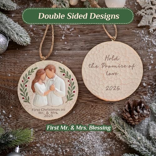 First Christmas as Mr. & Mrs. Ornament: Celebrate your first Christmas as a married couple in 2025 with this special keepsake ornament—a durable and high-quality resin bauble that captures the essence of your union. Each piece is crafted with care, ensuring it remains a treasured memento for years to come