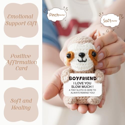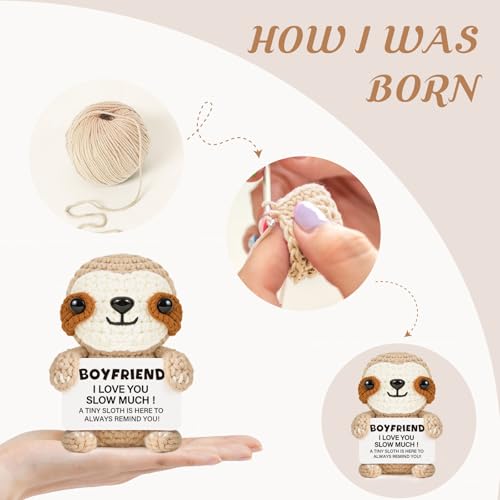 【High-Quality Handmade Sloth】Each little sloth is carefully hand-crocheted from soft cotton yarn, making it one-of-a-kind. It comes with a sweet little card saying “Boyfriend, I love you slow much!” – a perfect gift for boyfriend that helps strengthen your emotional bond