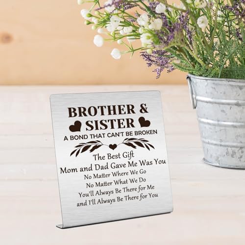 Brother in Law Birthday Gift Ideas:home office desk signs gift for women men engraved with meaningful words–”brother & sister a bond that can’t be broken the best gift mom and dad gave me was you. “Perfect gifts for Brother Sister.giving her this gift will surely make your sister understand the weight of her in your heart, and bring endless joy from it!Use it to express your love for her and the unbreakable bond between you!