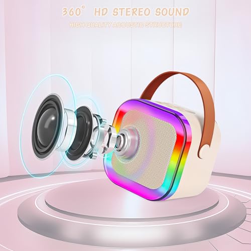 Jsdoin Karaoke Machine 2 Microphones, Portable Karaoke Machine with LED Light, Birthday Presents Microphone for Kids Families Birthday Party Gifts(Beige)