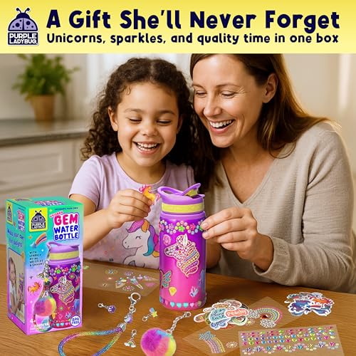 Ideal for Holiday Gifting: Beautifully boxed, this DIY water bottle craft kit makes an unforgettable birthday or Christmas gift for girls. Complete with pompom keyring, rainbow wristlet, and 4 adorable unicorn charms—everything needed to create a personalized water bottle they’ll love.