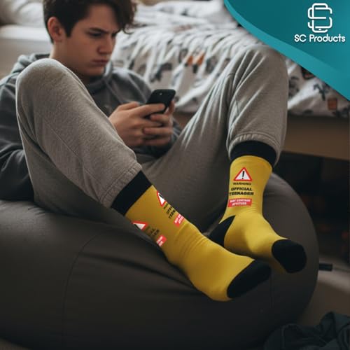 Looking for a fun and unique gift for teenage girls or a cool present for teenage boy? These bold and hilarious socks are designed to bring a smile to every teenager’s face. Featuring a stitched “WARNING: OFFICIAL TEENAGER – MAY CONTAIN ATTITUDE” message in a bright yellow warning colour, they’re a playful way for teens to express their personality. Whether you’re on the hunt for teenage girl gifts, presents for 13 year old boys, or gifts for teens boys, these socks are a must-have accessory that makes a statement every time they’re worn. Crafted from a high-quality blend of 80% cotton, 17% nylon, and 3% elastane, these socks are soft, breathable, and durable, ensuring all-day comfort for busy teenagers. The stretch in the material means they’re a perfect fit for boys gifts age 13, gifts for teen girls, or cool teen boys gifts – and the fun design adds a light-hearted twist that teens will love. Whether you’re searching for best gifts for 13 year old girls or cool gifts for 13 year old boys, these socks tick all the boxes for style, comfort, and personality. Designed with practicality in mind, the socks measure approximately 20cm from toe to heel and 15cm from heel to cuff, making them ideal for the average UK 13-year-old’s shoe size (UK 4-6). However, thanks to the stretchy cotton-rich fabric, they’re also suitable for smaller or larger feet, so they’re a great option for growing teens. Whether you’re shopping for teenagers gifts for boys or stuff for teenage girls, these socks offer a flexible fit that ensures no one misses out on the fun. These socks are not just for birthdays – they also make for fantastic festive fun! Whether you’re looking for christmas gifts for 13 year old boys or christmas presents for teenagers, these cheeky socks are guaranteed to raise a laugh. They’re ideal christmas gifts for teens, perfect for adding a dose of humour to the holiday season while still being a practical and wearable gift. The bright yellow design ensures they stand out, making them a conversation starter at any Christmas gathering. Whether it’s for a birthday, Christmas, or just because, these socks are the perfect mix of fun, function, and flair. If you’re on the lookout for cool gifts for 13 year old boys or best gifts for 13 year old girls, these socks are a brilliant choice. They’re a thoughtful and affordable option that teens will actually use, and they strike the right balance between a joke gift and a practical item. When it comes to teenagers gifts for boys or stuff for teenage girls, these socks are a surefire winner that’s bound to make them smile.