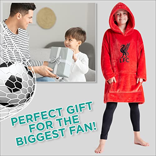 Liverpool FC Fleece Hoodie Blanket for Boys Teenagers One Size Kids Oversized Hoodie Liverpool Gifts for Boys