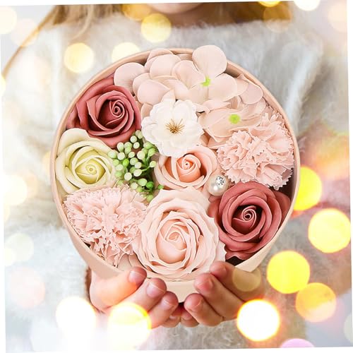 Romantic and Heartwarming: Scented soap flower(including roses, carnations, peonies and others) are packaged in a beautifully rounded box, attach a message card. Write wonderful greetings and give it to someone important, it is a romantic and heartwarming gift to her.