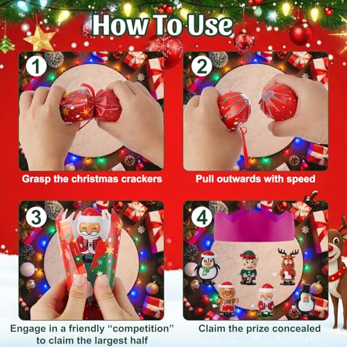 ✨ TRADITIONAL BRITISH XMAS FUN – Includes paper crowns, festive jokes、clockwork toy & runway card for authentic cracker-pulling moments – ideal for a fun family race and laughter-filled memories at your Christmas table